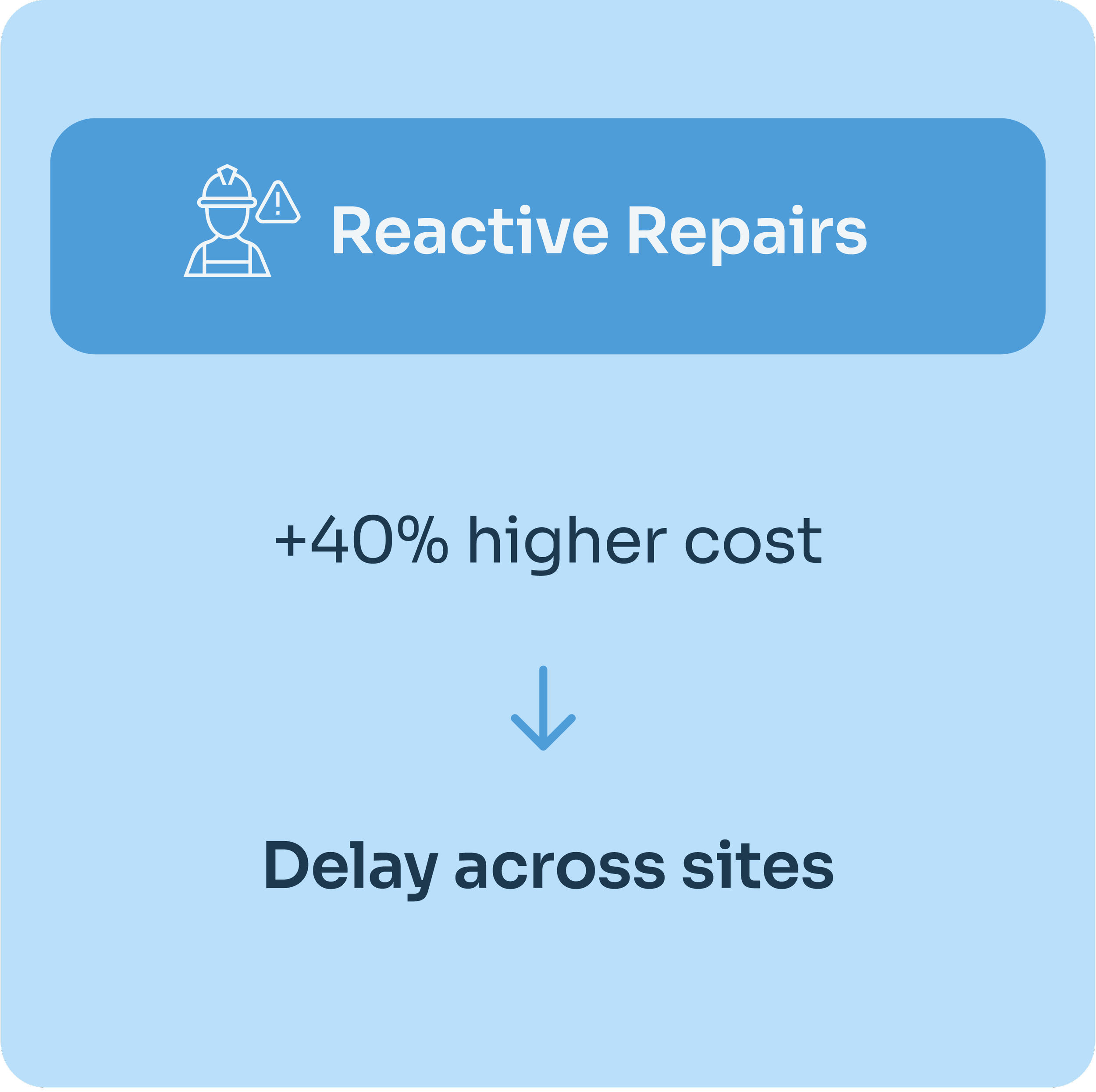 Reactive repairs cost up to 40% more (IFMA). Without automation, teams stay reactive—losing hours hunting for files like a missing HVAC warranty, multiplied across dozens of sites.